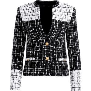 Alice + Olivia Jaydn Combination Tweed Button Jacket Black White Gold 2