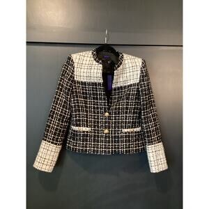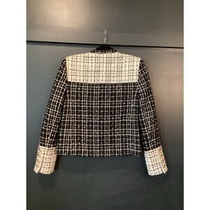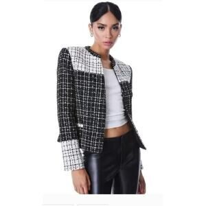 Alice + Olivia Jaydn Combination two tone Tweed Jacket Black ecru blazer 0 NWT