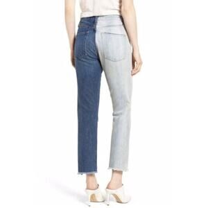 Alice + Olivia Jeans Boyfriend Jeans Two Tone Blue 24 asymmetrical