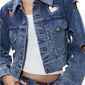 Alice Olivia Jeff Embellished Cropped Denim Jacket