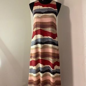 Dress doesn’t have tags (tags shown are from exact dress for fabric content and washing instructions) measurements are: 42” front shoulder to hem. 52” back shoulder to hem. 18” pit to pit. 20” across hips. Fully lined.