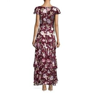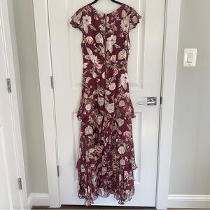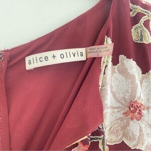 Alice + Olivia Jenny Flutter Sleeve Ruffle Dress Hazy Floral Wine Burgundy Red