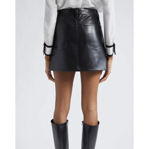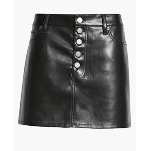 Alice + Olivia Joss Button Front Black Soft Faux Leather Mini Skirt Size 10
