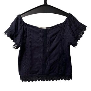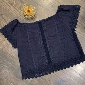 Alice + Olivia Jules Off the Shoulder Navy Top Size Medium