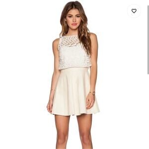 Alice + Olivia Julie Lamb Leather and Lace Overlay Mini Dress Cream Bone Size 4