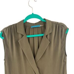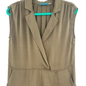 Alice + Olivia Jumpsuit Sleeveless Collared Surplice Silk Olive Green Size 6