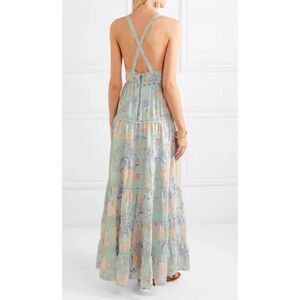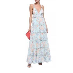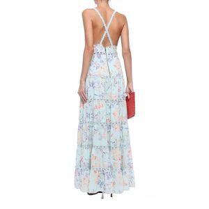 Alice + Olivia Karolina Maxi Dress Mint Floral Lace Tiered Backless Size 12