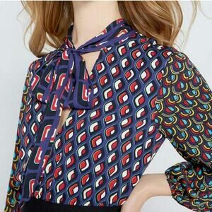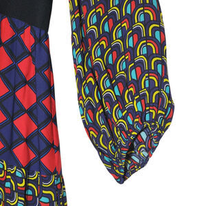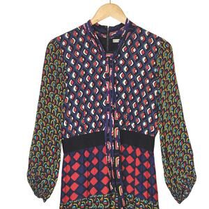 Alice + Olivia Karolina Mod Moon Tie Neck Blouson Sleeve Colorblock Midi Dress 6