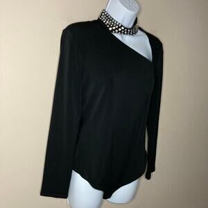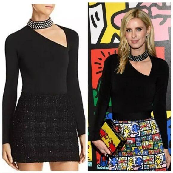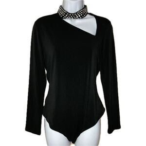 Stunning Alice + Olivia Kayson Cutout Crystal Embellished Bodysuit in size LARGE. The intricate design and attention to detail make this piece a must-have for any fashion-forward woman. The bodysuit is made with high-quality materials and features a comfortable fit that is perfect for any occasion.