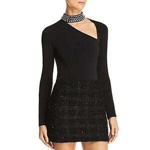 Alice + Olivia Kayson Embellished Cutout Bodysuit In Black Crystal Size Large
