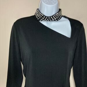 The brand's signature style is evident in the unique cutout design and crystal embellishments that add a touch of glamour to this wardrobe staple. Ideal for plus-size women, this bodysuit is perfect for any occasion and can be dressed up or down. Add this piece to your collection today and step out in style!