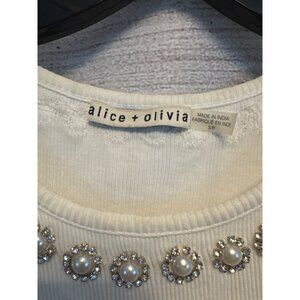 Alice + Olivia Kori Pearl Embellished Ribbed Tank Tops Size S