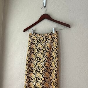 Alice + Olivia Lace Mermaid Maxi Skirt Semi Lined Yellow Black Size 0