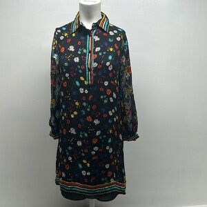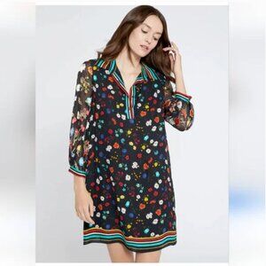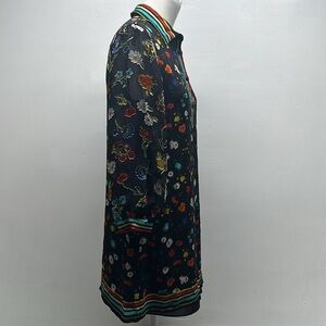 Alice & Olivia Lalita Dress Collared Blouson Botanical Ditsy Floral Black Small