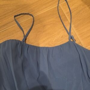 Beautiful blue camisole with layered design. Features delicate adjustable straps. Ideal for versatile styling.
