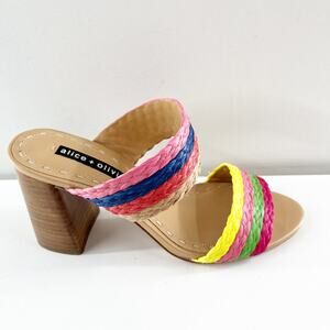 Alice + Olivia Leeda Raffia Rainbow Slip On Block Heel Sandals Rainbow 8