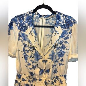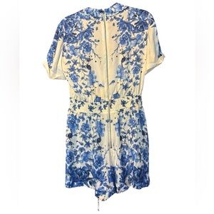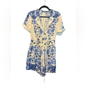 Alice & Olivia Leighton Silk Romper Jumpsuit in Floral White Blue Size 10 - Missing drawstring on one side - May be in the garment - Otherwise perfect condition - also can be sleepwear or pajamas