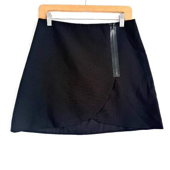 Alice + Olivia Lennon Side Zip Overlap Wrap Tulip Mini Skirt Womens 8 Black