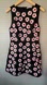 Back zipper closure. Fully lined. Sleeveless. Structured hem. Fit n Flare. Black background with embroidered white flower petals and red sequined centers. Made in India.