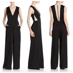 Alice + Olivia Londyn Sheer Panel V-Neck Sleeveless Wide Leg Jumpsuit in Black 2