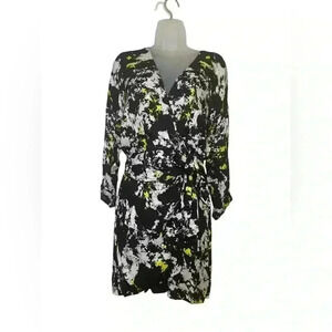 Alice + Olivia Long Sleeve Wrap Mini Dress Black White Print Size 10