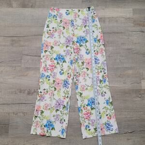 Alice + Olivia Lorinda Cropped Floral Gardenia Wide Leg Crepe Pants Size 2
