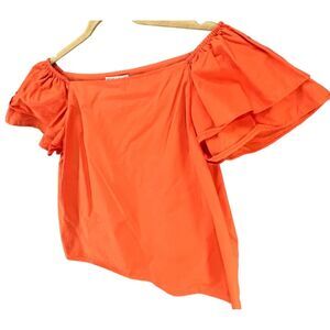 Alice + Olivia Loryn Poplin Blouse Womens Size S Orange Off the Shoulder Ruffle Sleeve