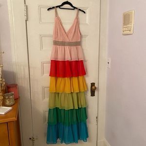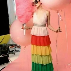 Alice + Olivia Luba Tiered Rainbow Maxi Dress Gown