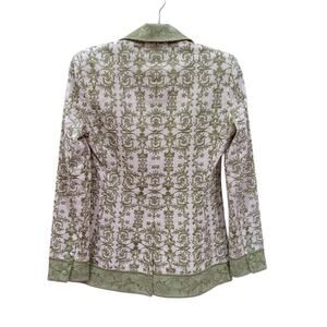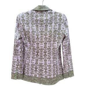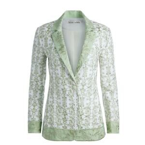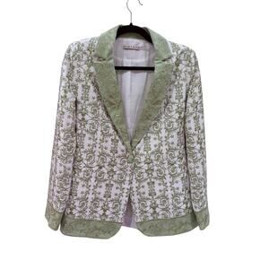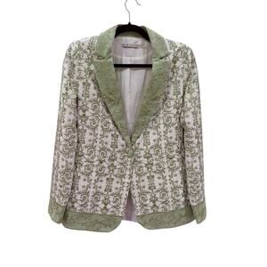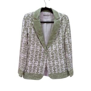 Alice + Olivia Macey Embroidered Cotton Linen Blazer Republic Geo Green Size 2
