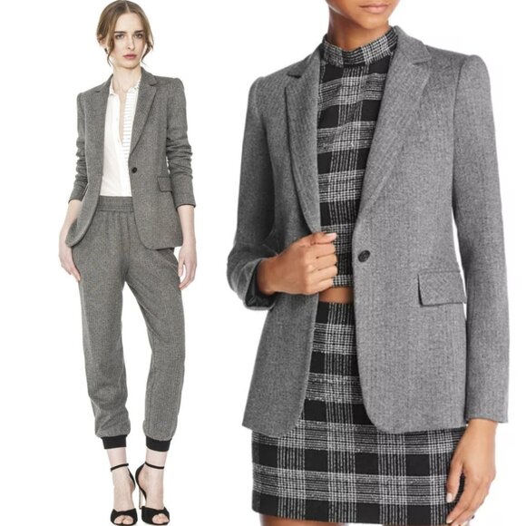 Alice + Olivia - Macey Fitted Notch Collar Tailored Blazer Herringbone Tweed 12