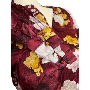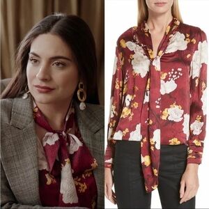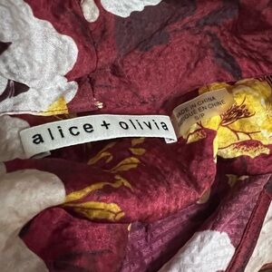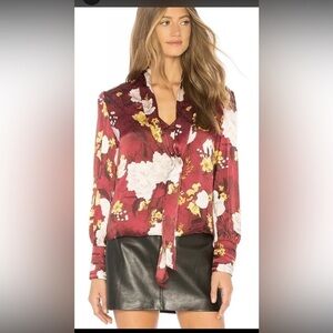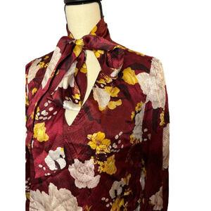 Alice + Olivia Maroon Floral Blouse with Neck Tie