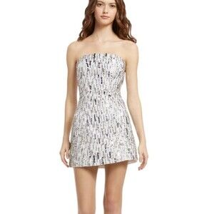 Alice & Olivia Matira Sequin Strapless Mini Dress in Silver