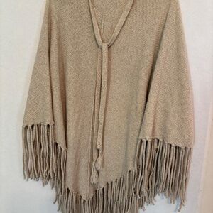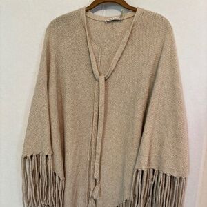 Alice + Olivia Mavis Chunky Wool Knit Poncho, Size S, Oatmeal. Split neck with self-tie closure - Poncho sleeves - Fringe hem Fiber Content 100% Wool.
