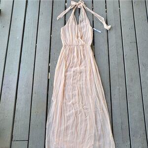Alice + Olivia Maxi Dress Halter V-Neck Sheer Silk Halter Melba Peach S