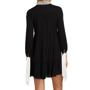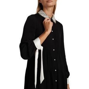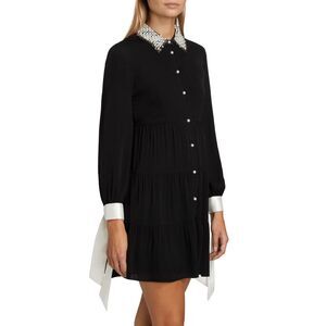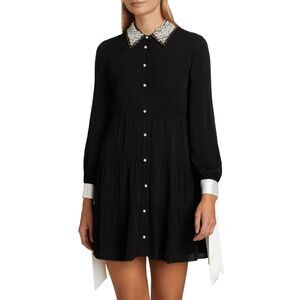 Alice + Olivia's Meeko minidress is designed with a shirtdress silhouette and styed with an embellished collar and contrast tie cuffs.
