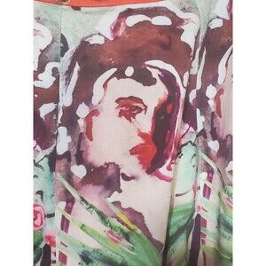 Alice + Olivia Meritt Lola Lady Print Pleated Midi Flare Skirt Cotton Size 2