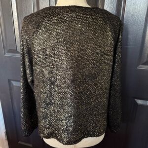 Alice + Olivia Metallic Gold Black Wool Blend Tweed Boxy Sweater Size S