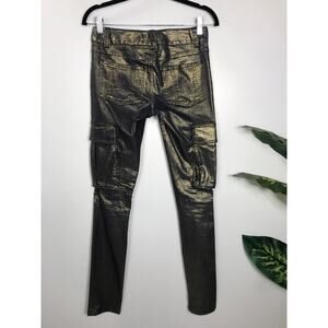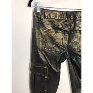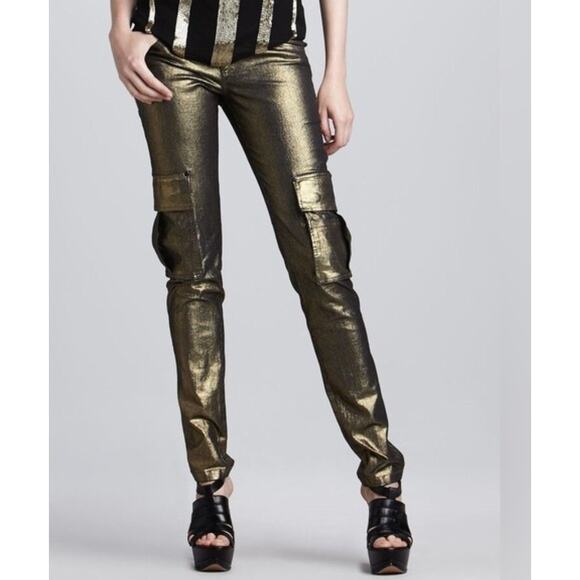 Alice & Olivia Metallic Gold Cargo Slim Jean Pants
