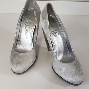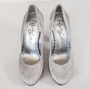 Alice + Olivia Miranda Haircalf Silver Pumps Platform Heels 38 1/2