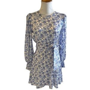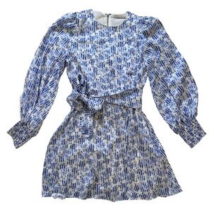 Alice + Olivia Molli Dress. Floral motif mini dress with a flattering tie-waist. Worn once - small makeup mark near neckline as shown.