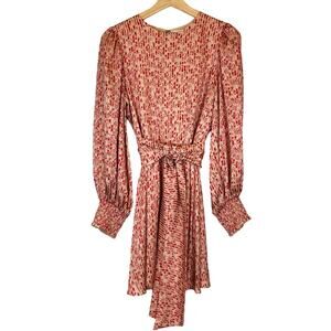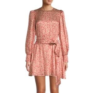Alice + Olivia Molli Floral Belted Mini Dress Red Floral Stripe Women's Size 8