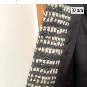 Elegant blazer with black and white stripes. Perfect for professional settings.