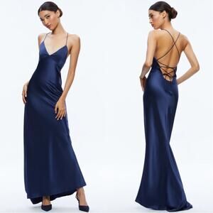Alice + Olivia Montana Azure Blue Strappy Tie Back Satin Maxi Dress Size 10 is brand new with tags!