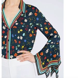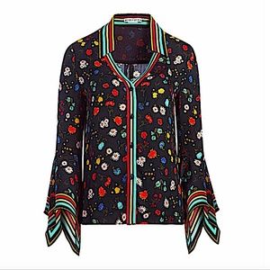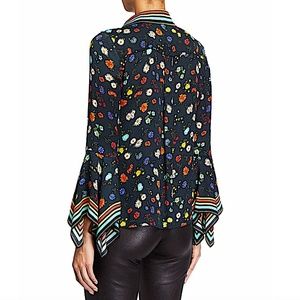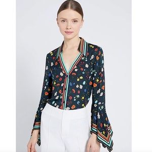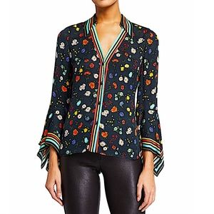 Alice + Olivia Multi New with Tag Randa Trumpet-sleeve Button-down Top