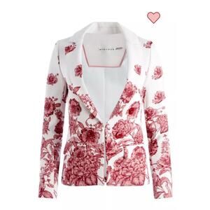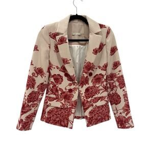 Alice + Olivia Mya Notch Collar Fitted Blazer Off White Multi Red Floral Size 2