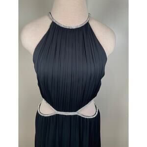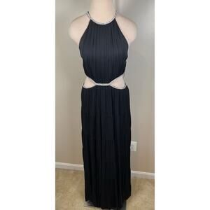 Alice + Olivia Myrtice Crystal Embellished Cutout Pleated Black Maxi Dress Sz 8