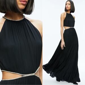 Alice + Olivia Myrtice Crystal Embellished Cutout Pleated Black Maxi Dress Sz 8 is brand new with tags! Sold out everywhere!