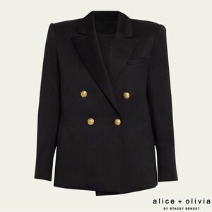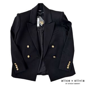 Alice + Olivia **NWT** Anthony Double-Breasted Strong-Shoulder Blazer Black/Gold