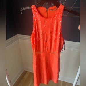 Alice + Olivia NWT Cara sequined Mesh Dress in a bright orange