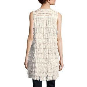 Alice + Olivia NWT Fringe Vest Crochet Cream Silk Extra Small XS